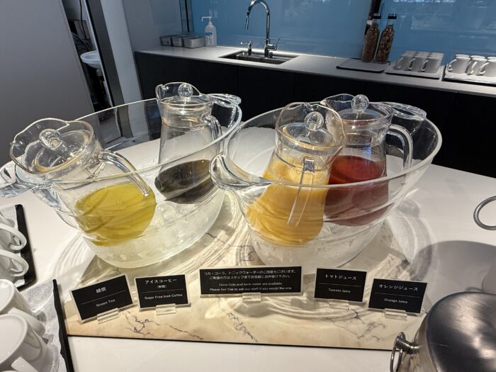 ソフトドリンクは、緑茶、アイスコーヒー、オレンジジュース、トマトジュースが用意されています。