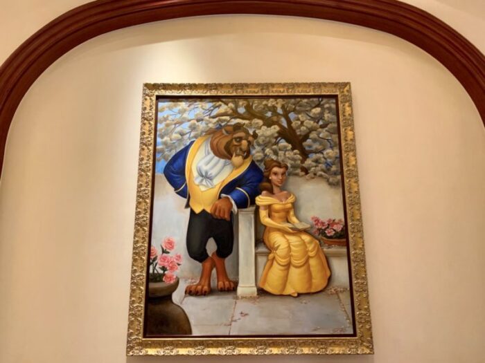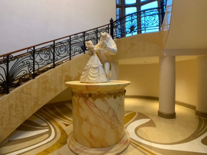 上記の写真の様に、レストランのエントランス付近にはベルと野獣がダンスをしている像が飾ってあります。