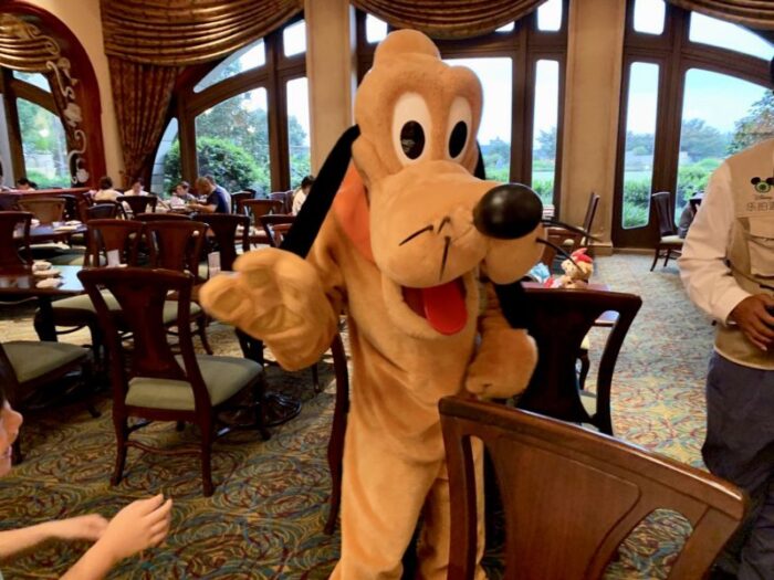 ルミエールキッチンでは、ミッキー、ミニー、プルートのグリーティングをすることができます。