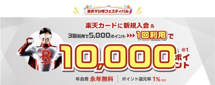 楽天カードでは、新規のカード発行でポイントがもらえるキャンペーンを開催しています。