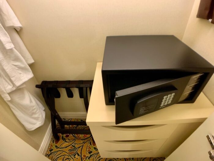 海外のホテルでは必須の金庫は、クローゼット内にありました。