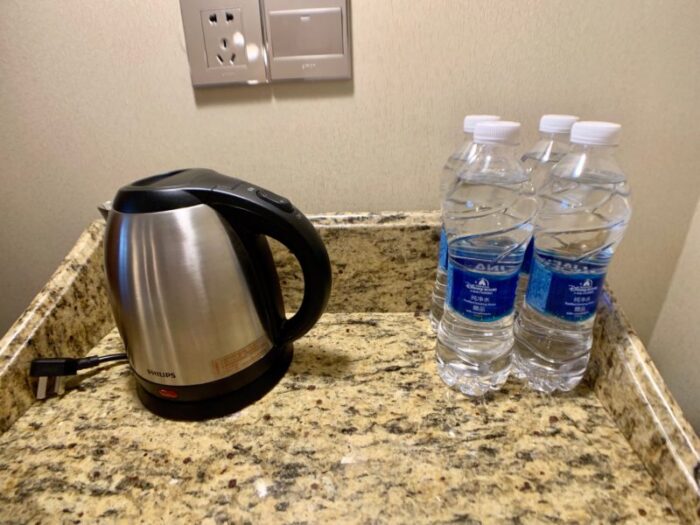 水のボトルは、部屋に4本、洗面エリアに2本の計6本ありました。