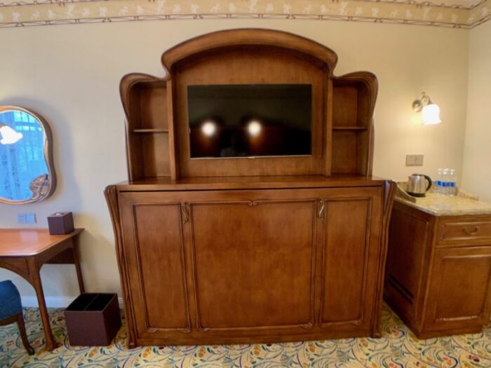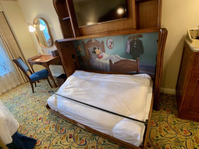引き出しを引っ張ってみたら、エキストラベットが収納されていて隠れミッキーがいました。