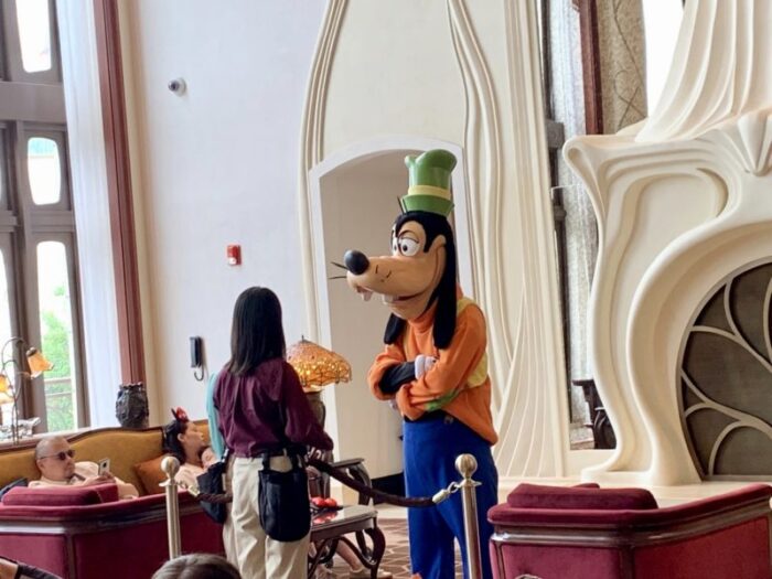 グリーティングは、ホテルのロビーでグーフィーが暇そうにしていました。