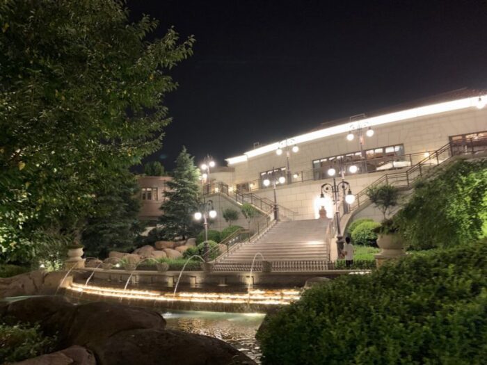 ライトアップされた庭園は、ヨーロッパのお城にいるような感覚になれます。