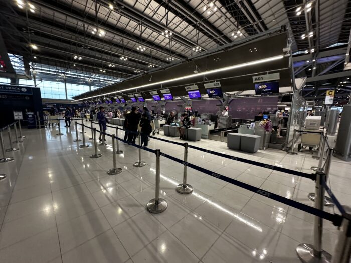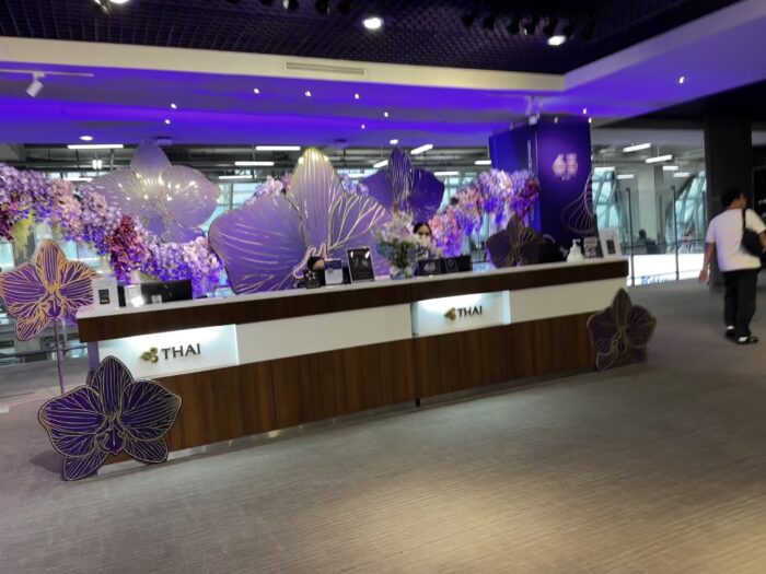 タイ航空のビジネスクラスのチェックインカウンターは、一番端のAカウンターになります。