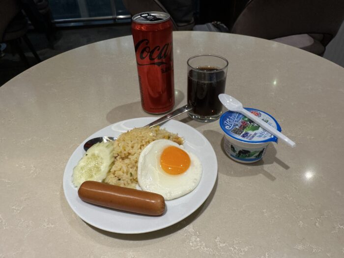 朝食の時間帯でしたが、アメリカンブレックファーストというより、タイチャーハン、スパゲティカルボナーラもあってランチっぽいメニューになってました。