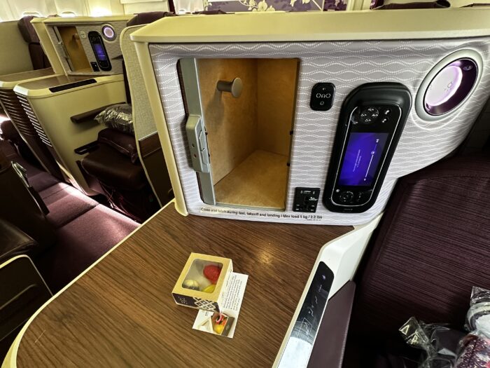 ビジネスクラスの座席は1-2-1のスタッガード配列のシートになります。