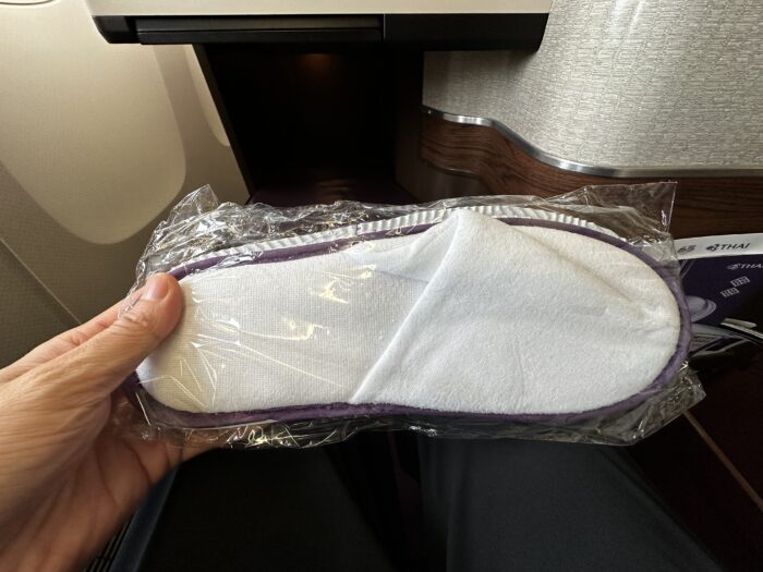 スリッパは、日系の航空会社よりもしっかりしているように感じます。