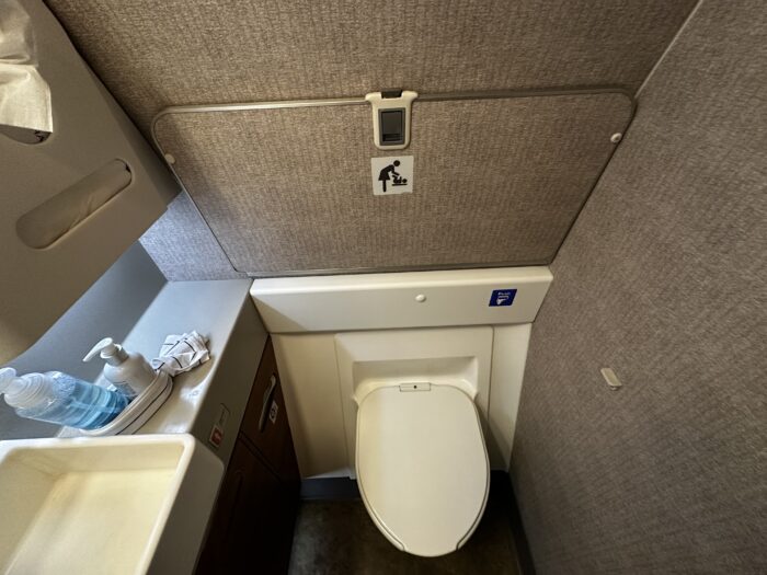 ファースト、ビジネスのみ前方の搭乗橋から機内に入ることができます。