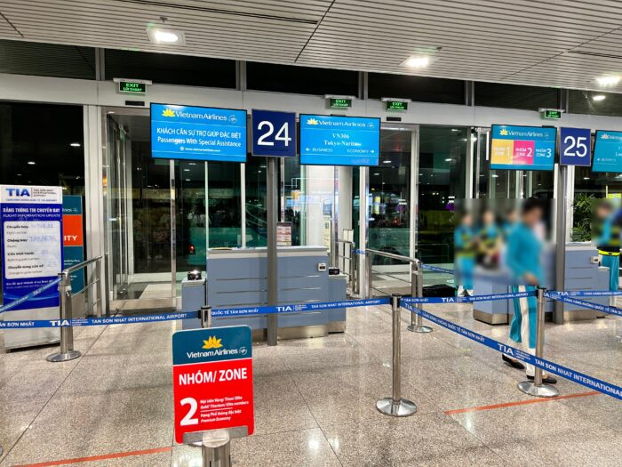 タンソンニャット空港のビジネスクラスカウンターでチェックイン