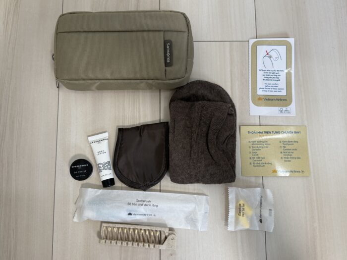 ベトナム航空のシートカラーに合わせて、黄土色っぽいポーチになってます。