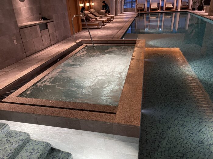 プール自体は鎌倉の海岸線をイメージした美しいデザインで、長さ20メートルの温水プールとジャグジーを備えています。