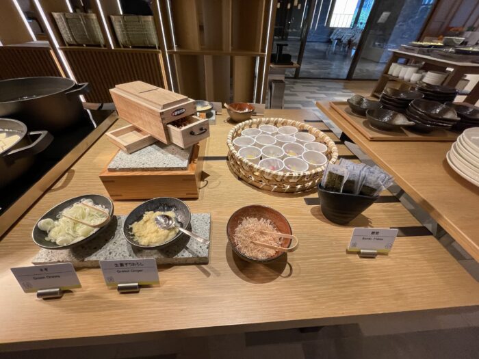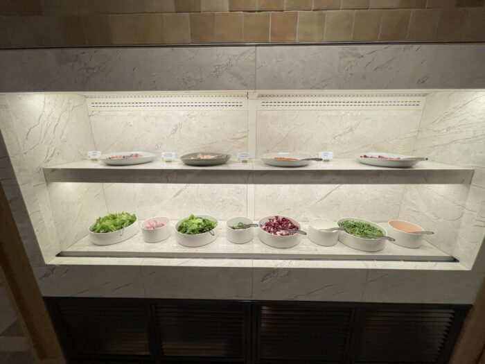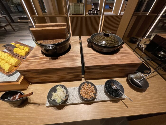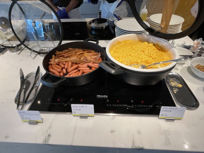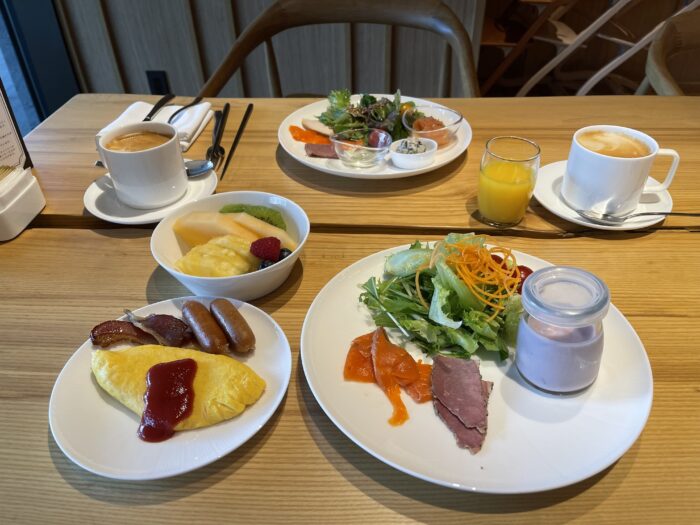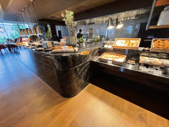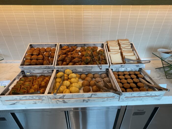 基本的なサラダやパン、ホットミール、和食などは揃っていますので、落ち着いた雰囲気で朝の時間を過ごしたい場合はラウンジを選択するのも賢い方法です。