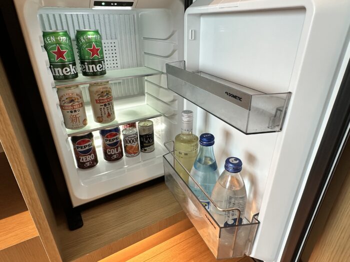 冷蔵庫の中にはビールやソフトドリンクが入っていますが、こちらは有料となります。