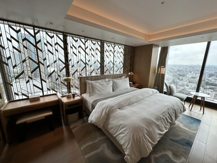 84平米という広々とした客室、心身を癒やすヘブンリーベッド、そしてクオリティの高い食事とラウンジサービス。